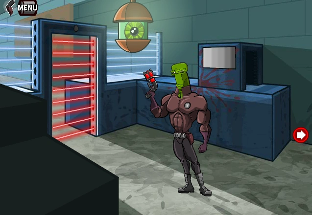 You control an alien assasin on a mission to assasinate the senator. Using the mouse, the assasin can pick up and combine items, shoot enemies, and move around. you can also do trades and favors along the way and kill bunnies to get a perfect rank.