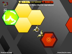 Your objective in this strategy game is to take control of an entire hive. You breed bee-like bots and let them evolve to build up your army. Send your buzz-bots to attack hexagon shaped cells to capture territory and grow your hive. The game is fully mouse controlled.