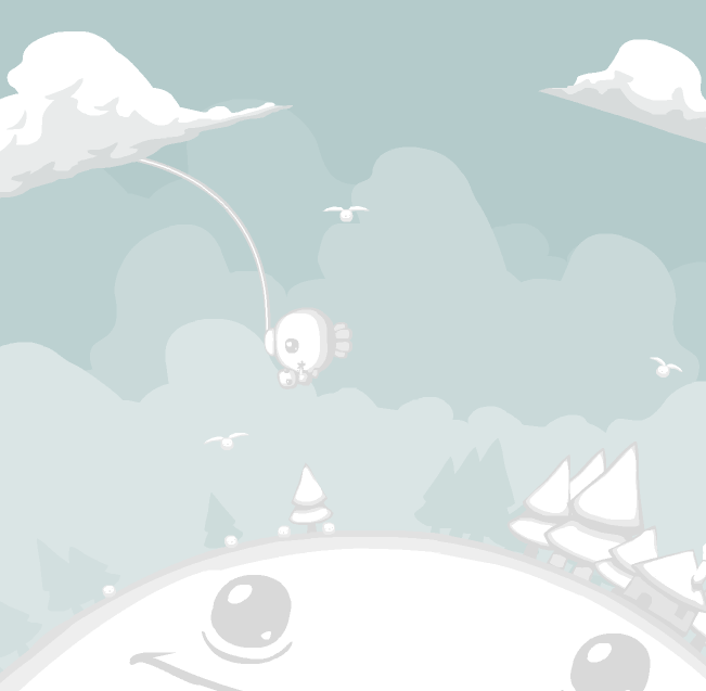 The game starts on Earth, where a boy gets a visit from a strange creature that takes him on a strange odyssey. You launch the tongue of the creature up into the clouds in order to grab hold of a cloud. Swing from cloud to cloud to go higher up until you reach space, then swing from star to star to launch yourself toward one of four other planets. When travelling through space and entering a planet's orbit, the planet's gravity will help pull the player towards it. On each planet, the creatures living there require your help. In order to help them, you must solve each planet's unique puzzle. Each planet's puzzle has a different type of solution. When you successfully solve each one you see a flash of light. After you complete all four puzzles, head back to blue earth to complete and see the ending of the game. Once you're above the clouds and you have enough speed, you can also just hurtle through space without being attached to any stars. There are different colored navigation indicators pointing you towards each planet that look like butterflies. Once you solve the puzzle on a planet, that planet's location marker disappears.