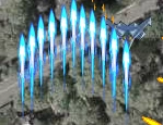 This is more of a defensive weapon. When in a tight situation, click and drag the mouse in front of your plane to make a temporary shield that deflects enemy shots. Each level adds to the possible length of the shield and lessens consumption of Power.