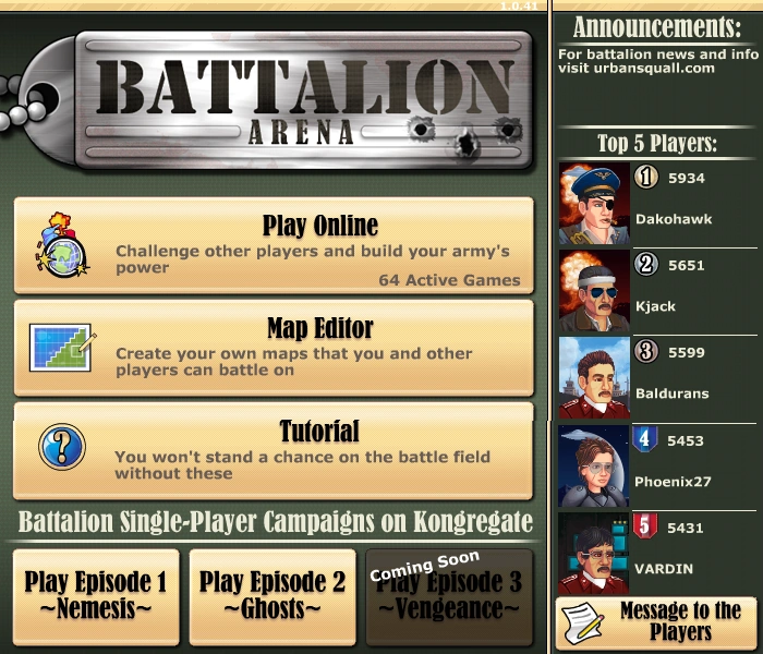 Got interested into this game? This isn't the only one that Urbansquall made! Check out about other games here: http://kongregate.wikia.com/wiki/Battalion:_Series