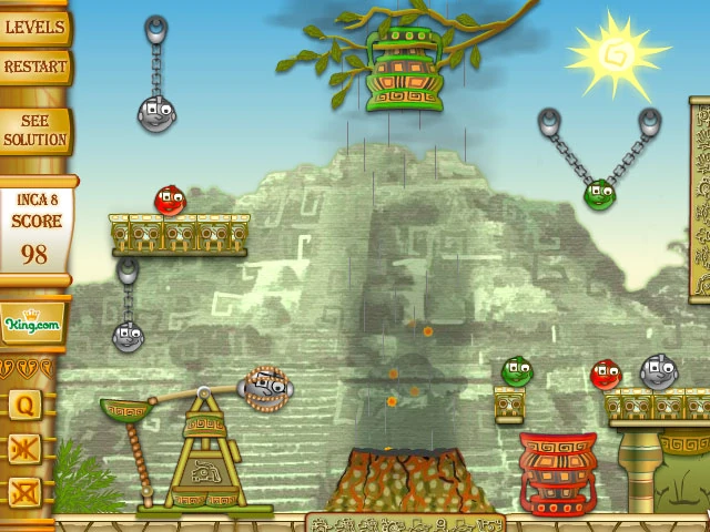The game is a point & click physics puzzle. The object of the game is getting all the colored balls to fall into vases of the corresponding color. If a ball falls into a vase of the wrong color or a grey ball falls into any vase, the player fails the level. You can release balls by cutting the chain holding them. The order and timing of which they are released affects the puzzle. There are also other objects like launchers ans seesaws which you can release by cutting chains. Balloons, catapults, fountains, and statues are new objects that were not included in the first game.