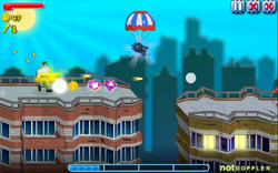 You play as a runner, running with a weapon equipped and a health bar at the top left hand side of the screen. You are to dodge obstacles, avoid your enemies' attacks and use your equipped weapon to kill them off. Running into obstacles such as spikes and walls, falling off the edges of buildings and being hit by enemy lasers will deplete your health and once your health is completely depleted, the level is over. You will get chests that you can unlock using the keys you've received in that stage and you can use the money earned to upgrade your abilities and purchase better weapons and 'support'. Completing objectives will increase your level and increasing your level will unlock challenges, weapons for equipping and 'support'. There will be 3 episodes, all that can be completed by running the required distance and defeating the boss at the end. Survival mode, which has unlimited distance, will be unlocked upon completing Episode 3.