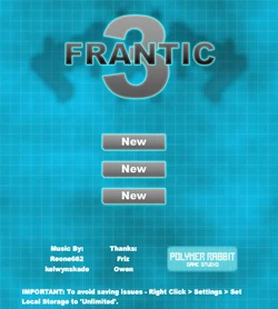 Frantic 3 is a scrolling shooter game of the "bullet hell" kind. It was made by Polymer Rabbit, who also created Frantic and Frantic 2. After the game got an impossible badge, "Insurance Discount Qualifier", its popularity got a boost.