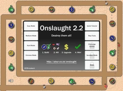 Onslaught 2 is a tower defense game that has multiple upgrade paths and combination attacks. The monsters follow a set path to your base and you must use turrets to kill them before they reach their destination.